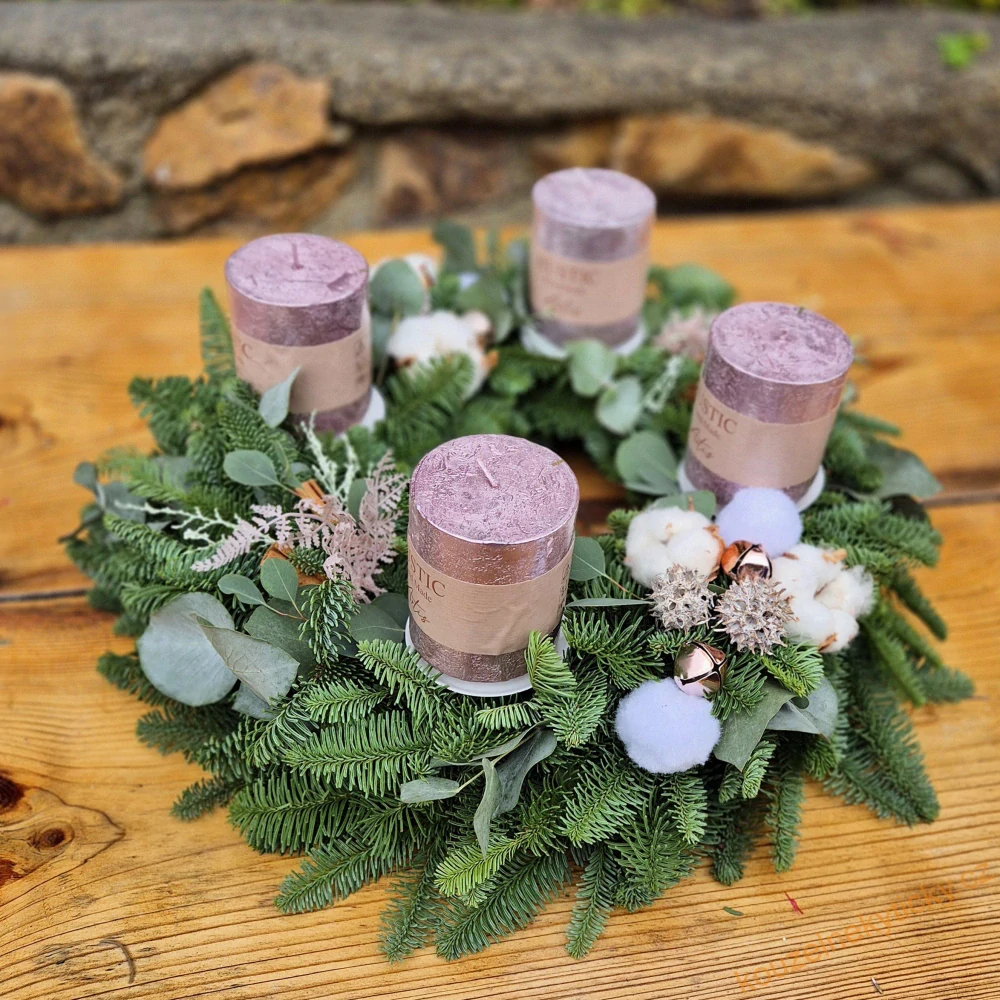 Adventní Chvojový Nobilis 40cm Rustical do ledové starorůžové