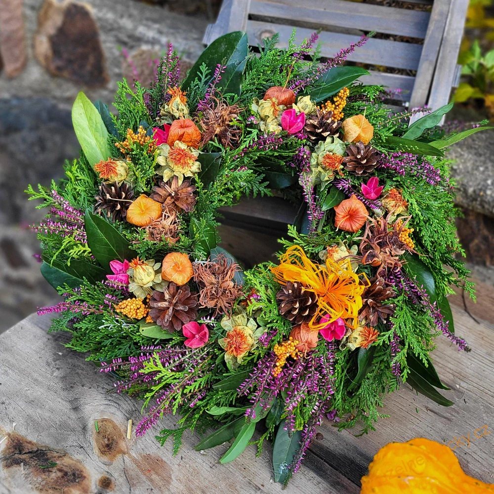 Chvojový dušičkový věnec - zdobený vínová s oranžovouNení skladem675,0 Kč/ ks