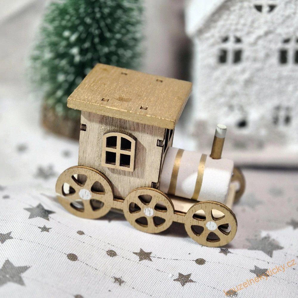 Figurka vánoční - dřevěná mašinka zlato/bílá větší