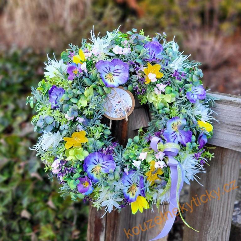 Jarní míchaný věnec - Sluneční paprsky ve fialkách