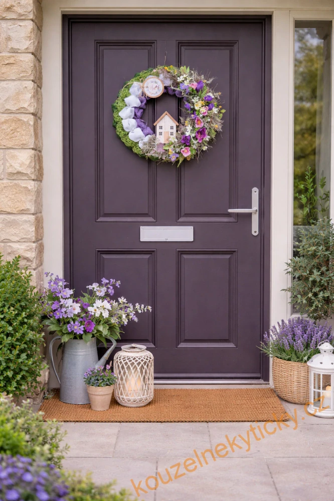 Jarní věnec jutový - Do fialkova s domečkem