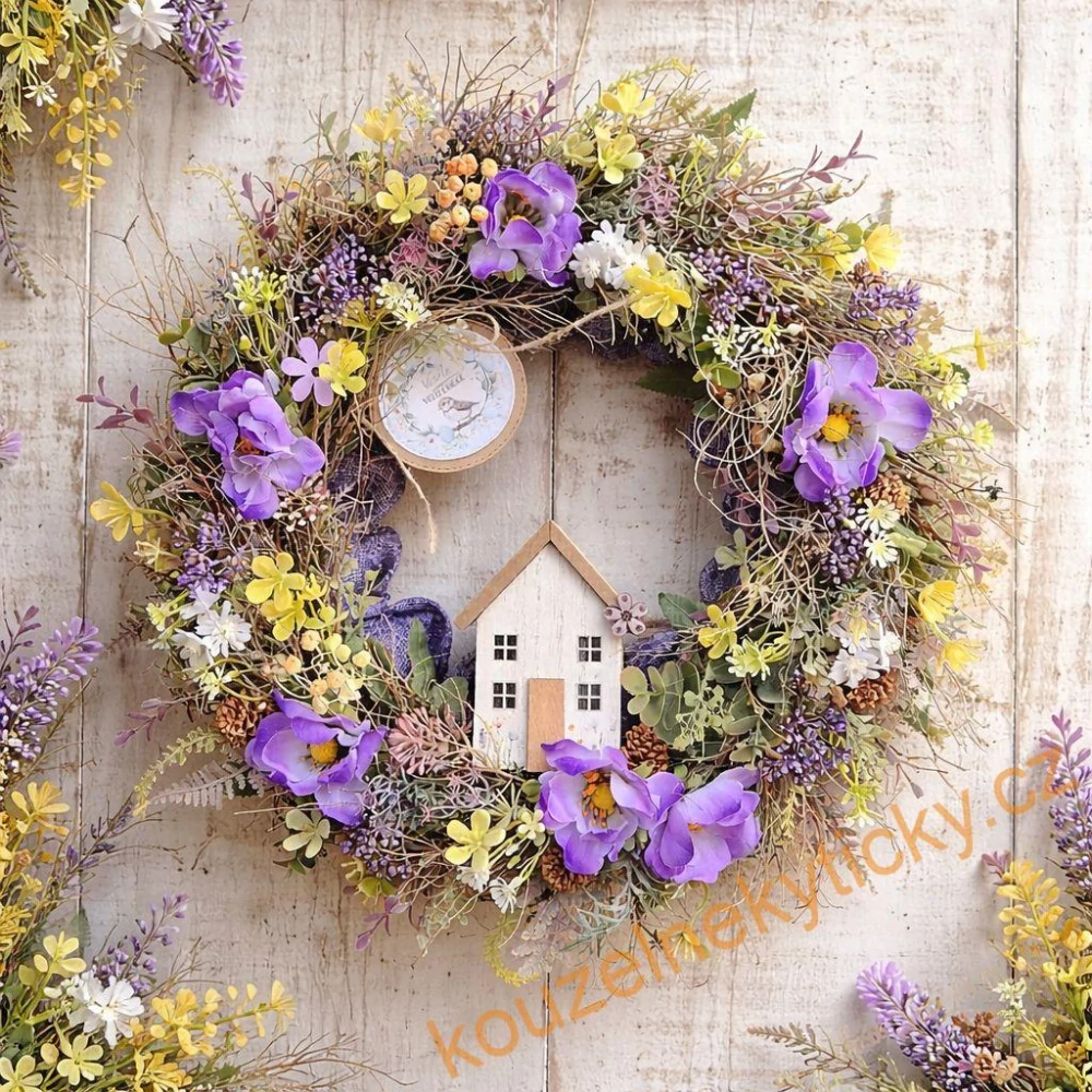 Jarní věnec jutový - Fialkovo-žlutý s domečkemNení skladem725,0 Kč/ ks