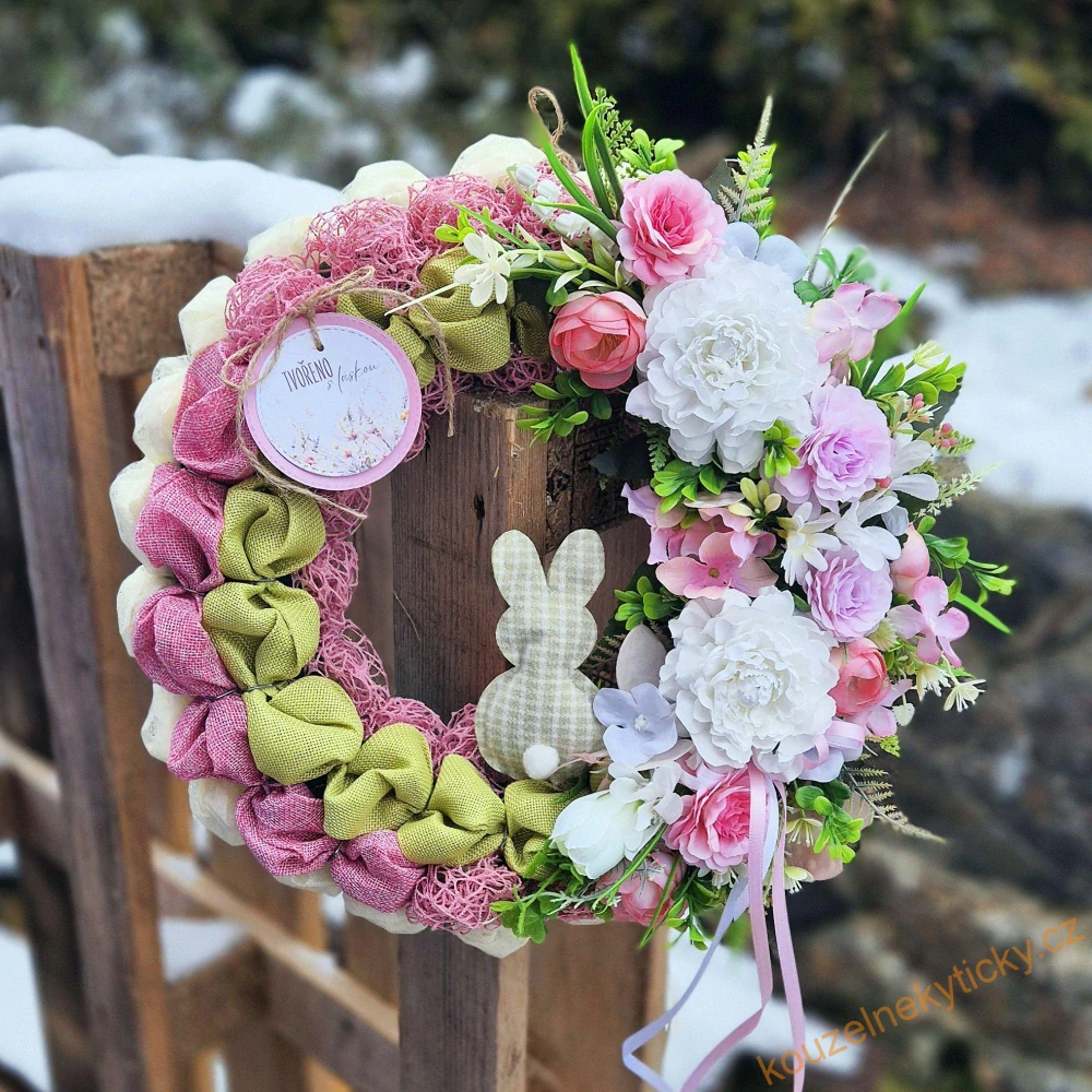 Jutovo-květinový věneček - Se zajíčkem, růžovo-zelenkavýSkladem 1 ks687,0 Kč/ ks