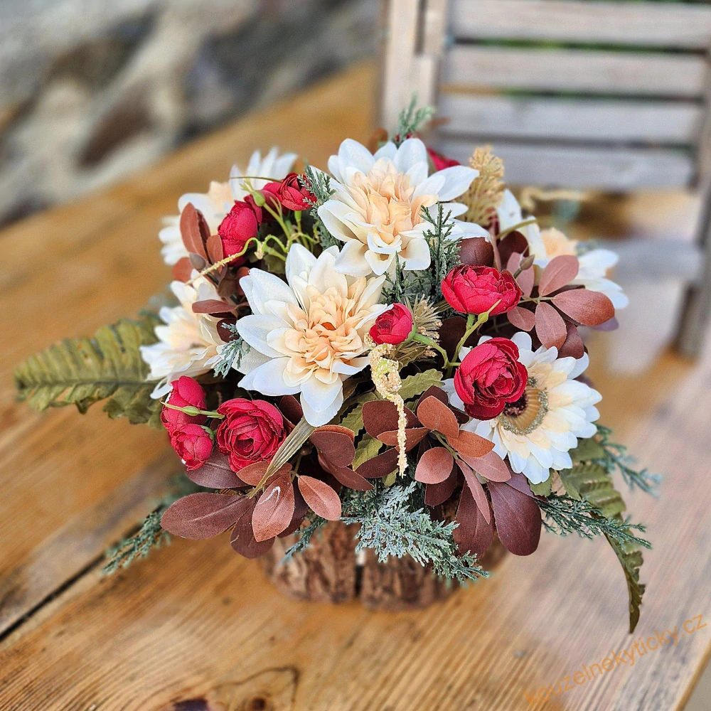 Květinová dekorace zatížená - Kůrová aranž krémovo-červenáNení skladem645,0 Kč/ ks