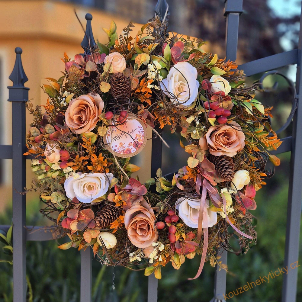 Květinový věnec - Hnědo-oranžový , růžičkyNení skladem1 175,0 Kč/ ks