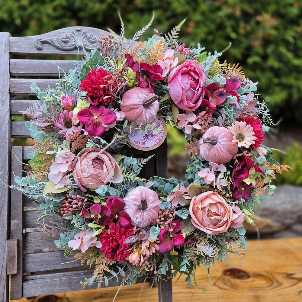 Květinový věnec s dýněmi - Růžovo-vínovýNení skladem1 199,0 Kč/ ks