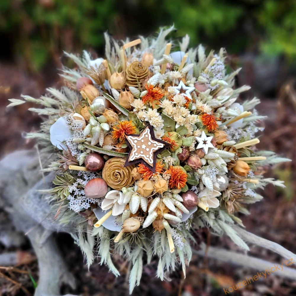 Vánoční dekorace , kytice . Sušené materiály, trvanlivá. Šířka 25cm, výška 32cm