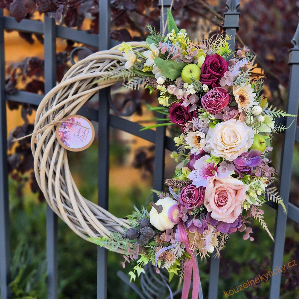 Proutěný podzimní věnec 43cm - Podzim se zelenými jablíčky