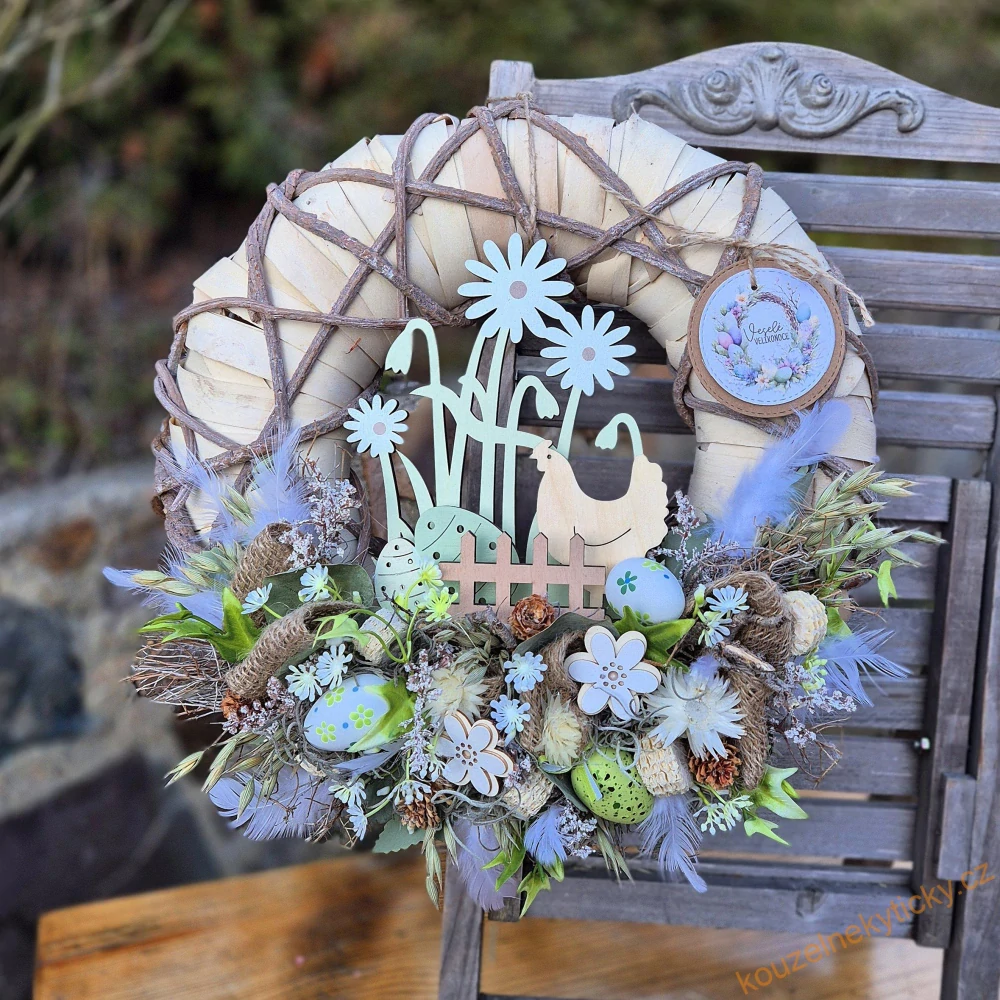 Proutěný věneček - Se slepičkou zeleno-krémovýSkladem 1 ks695,0 Kč/ ks