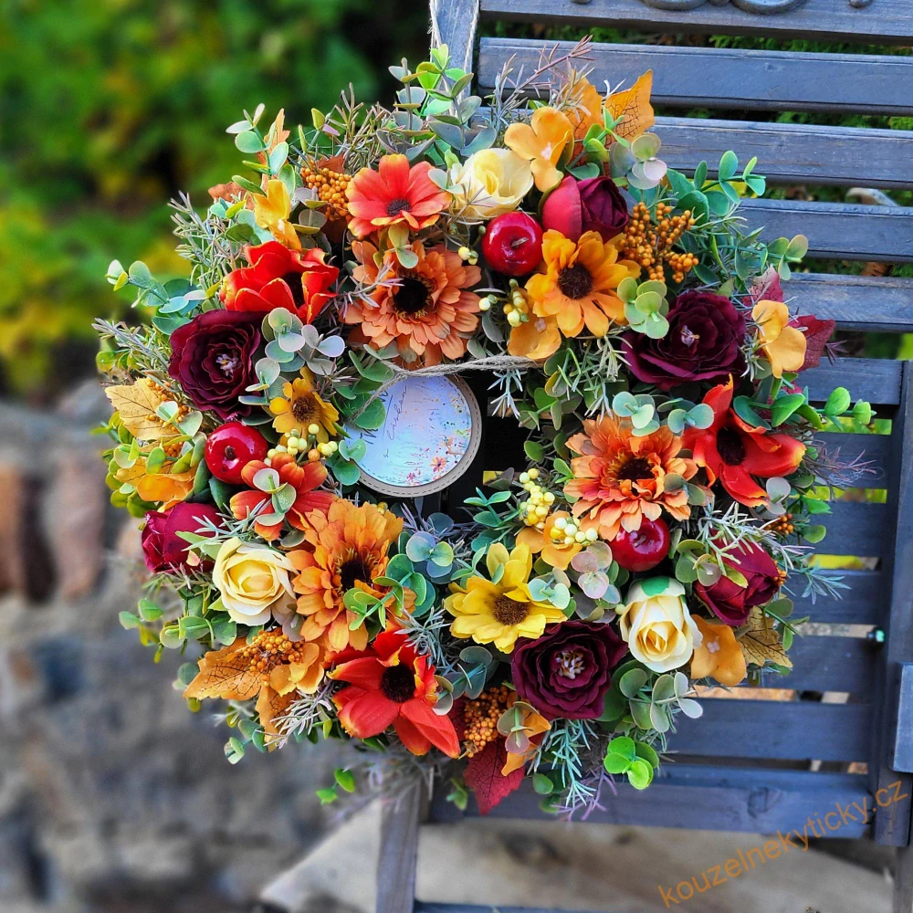 REZERVACE Květinový věnec menší - červený a oranžový podzim