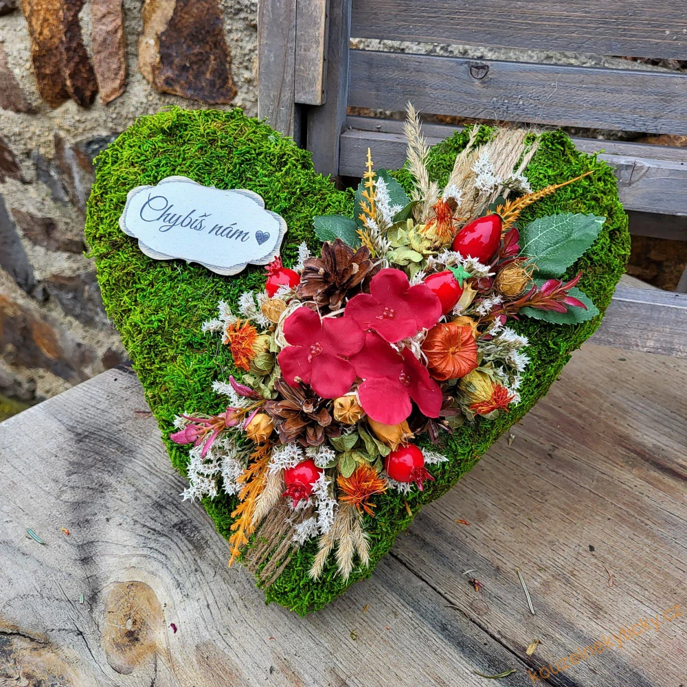 Smuteční mechové srdíčko velikost L - Červené plody I. chybíš nám