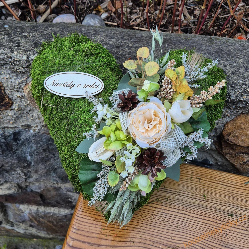 REZERVACE Smuteční mechové srdíčko velikost L - krémovo-zelené