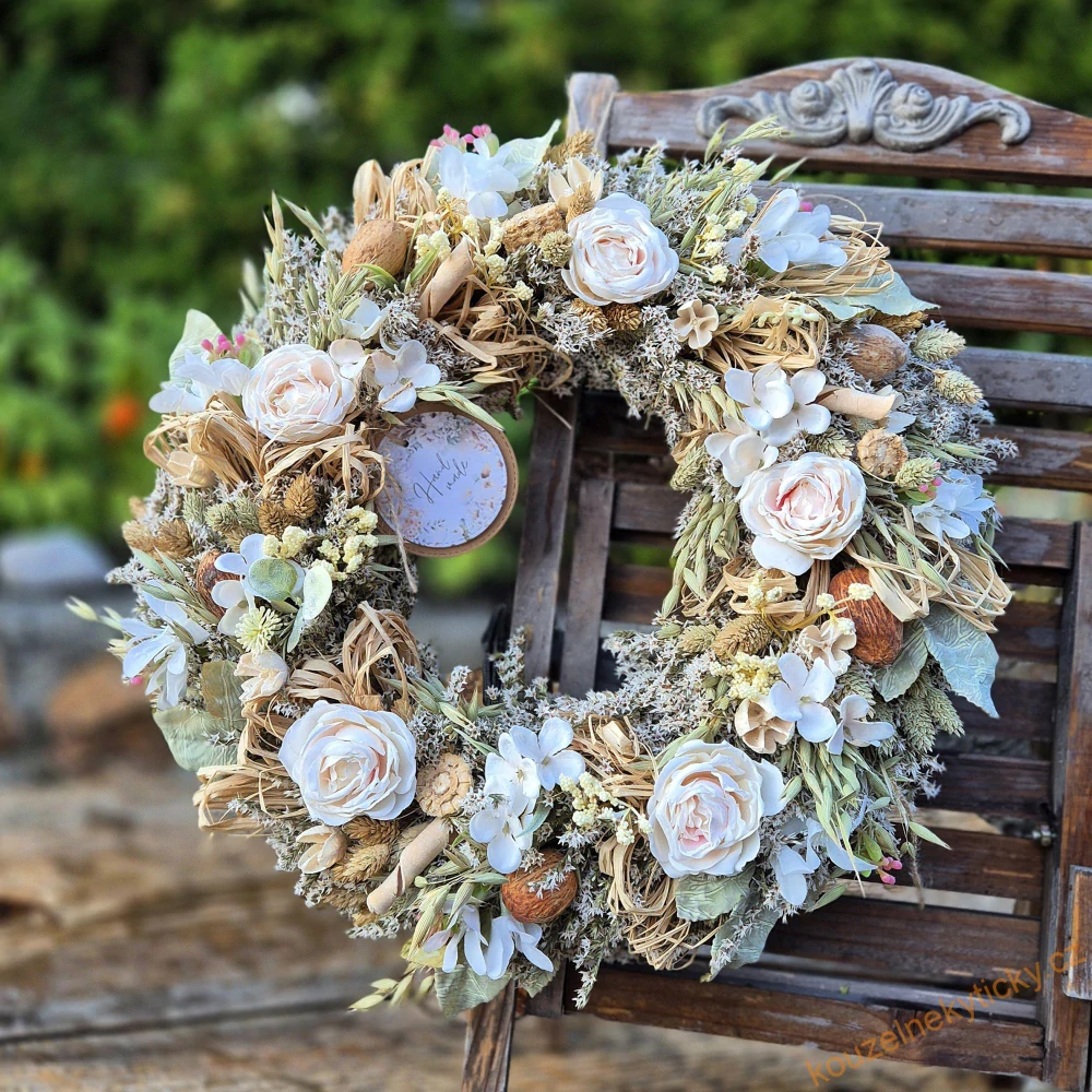 REZERVACE Sušinový věnec celoroční - Krása noblesní krémové II.