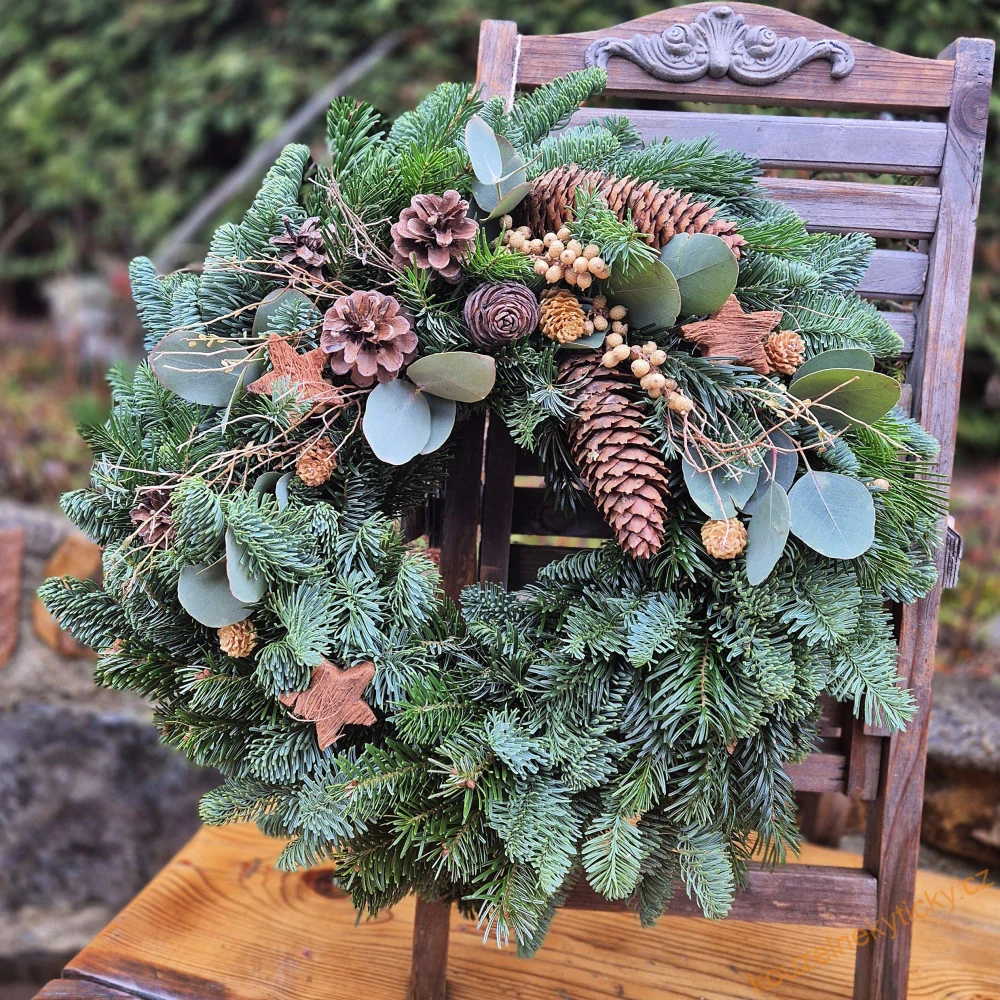 REZERVACE p. Brun. Živý věnec 40cm Chvojový Nobilis - hvězdy