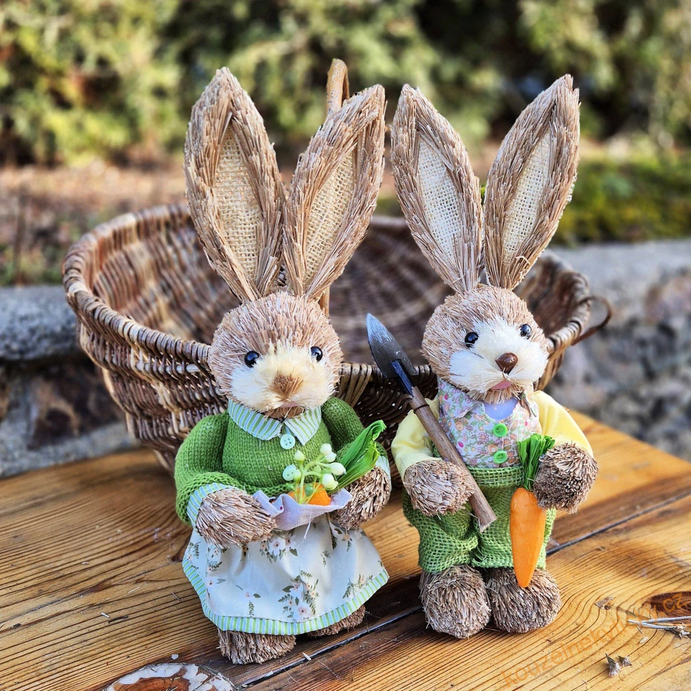 Trávoví zajíčci, krásná jarní dekorace. Cena za pár. Výška 35cm