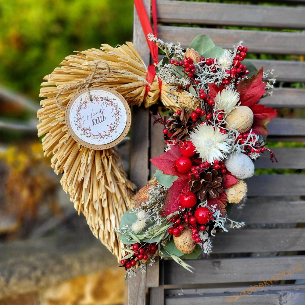 Slaměnné srdíčko - Podzim s eukalyptem