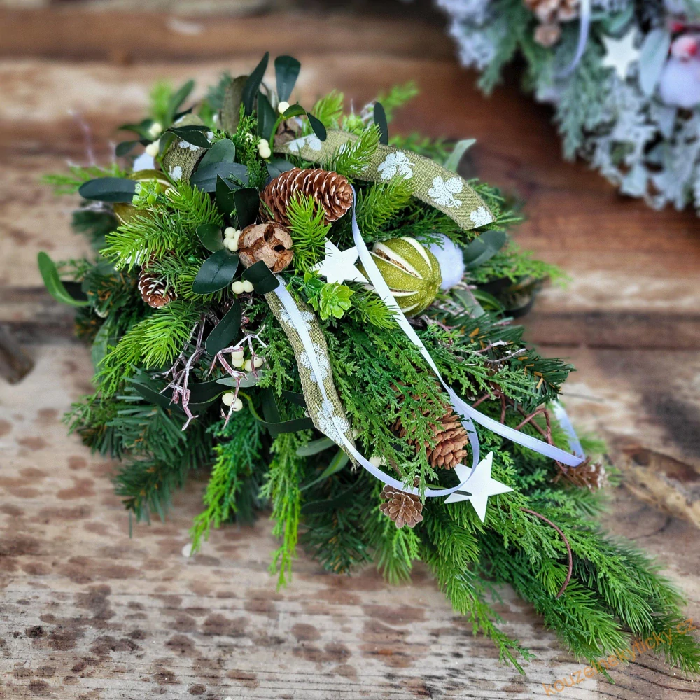 Vánoční dekorace na pověšení nebo položení, tvaru slzy. Umělé trvanlivé materiály. Délka 40-45cm