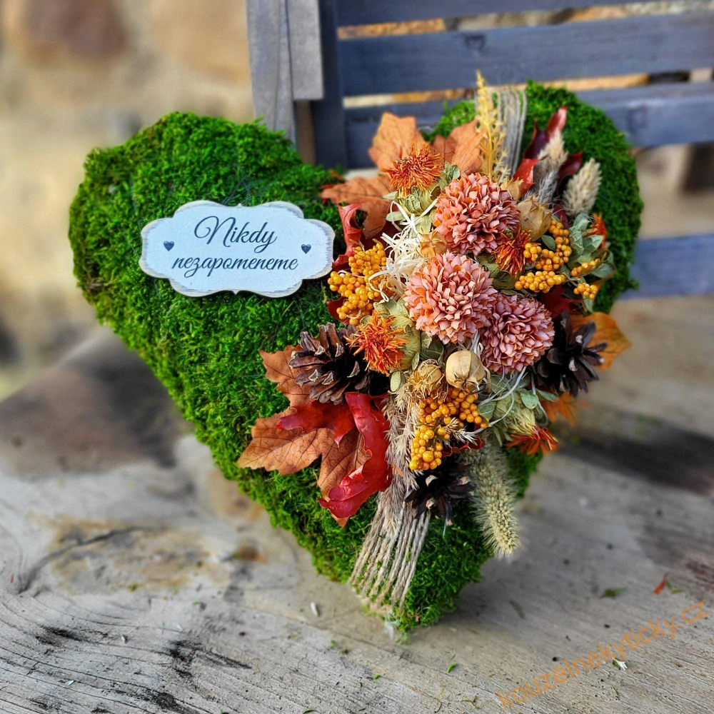 Smuteční mechové srdíčko velikost L - CHryzantémky