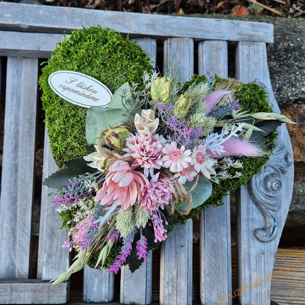 Smuteční mechové srdíčko velikost M - Pink S láskou vzpomínáme me