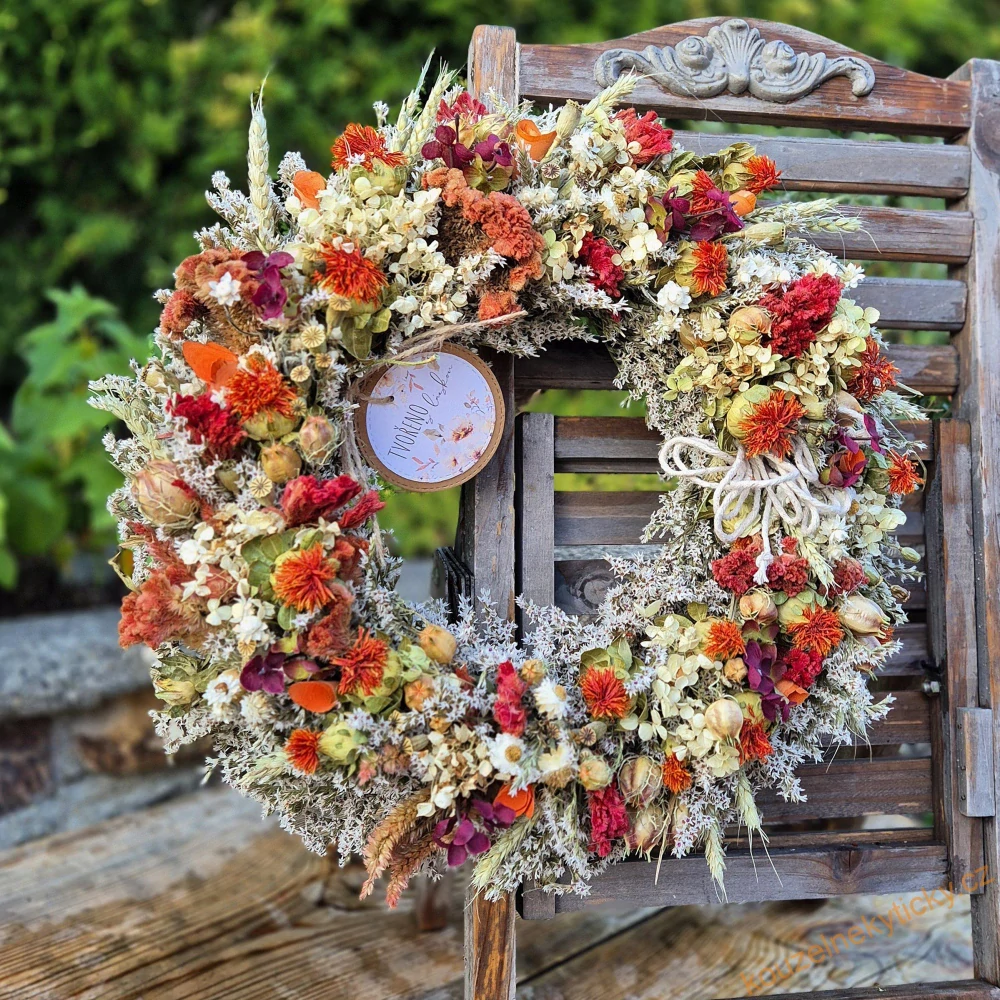 Sušinový celoroční věnec 37cm - Barevný vínovo-oranžový