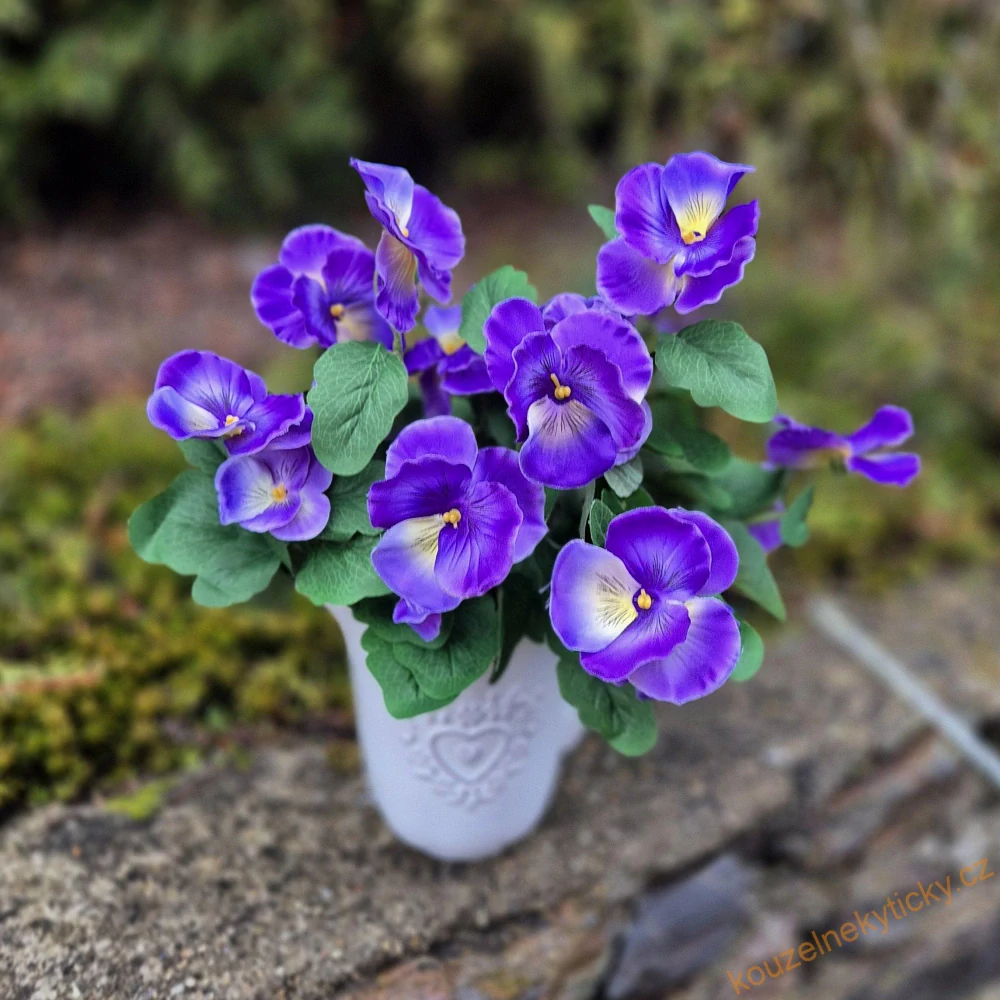 Krásné, živě vypadající macešky, trs včetně listí . Na foto jsou dva svazky. Délka 25cm