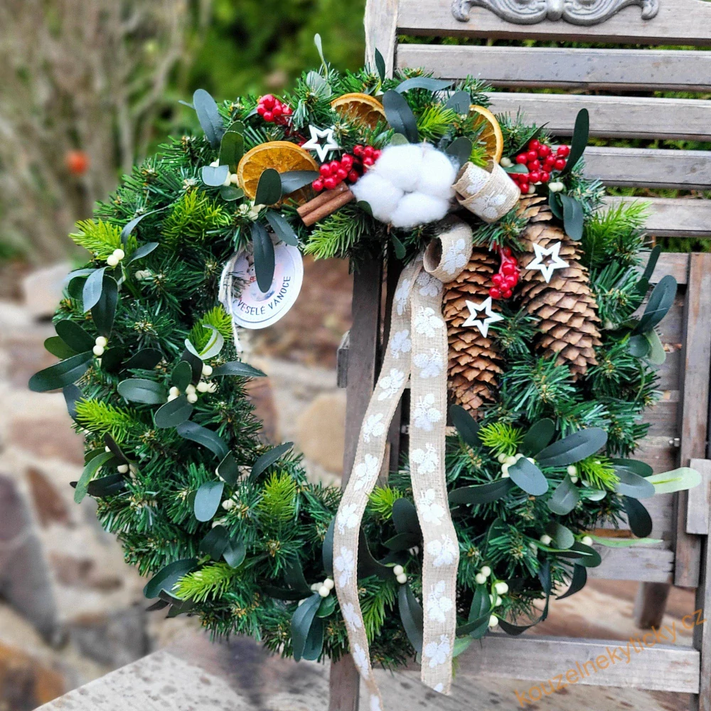 Věneček z umělé chvoje,umělé jmelí. Průměr 40cm