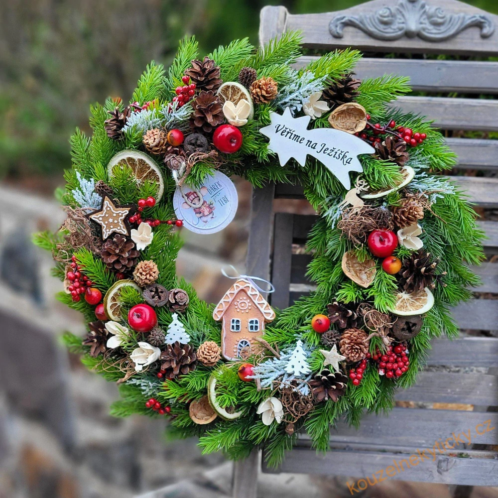 Umělý chvojový věnec - Kouzelné Vánoce s perníkovou chaloupkou
