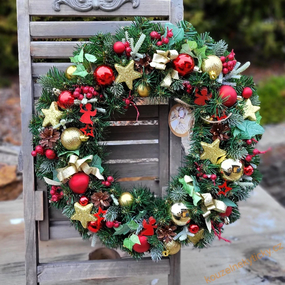 Umělý zimní chvojový věnec - Červeno-zlatý Č 10