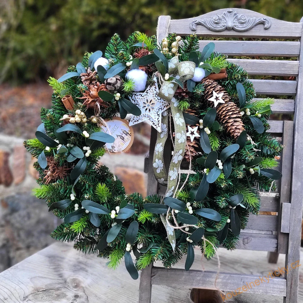 Umělý zimní chvojový věnec - hvězdička ve jmelí Č3