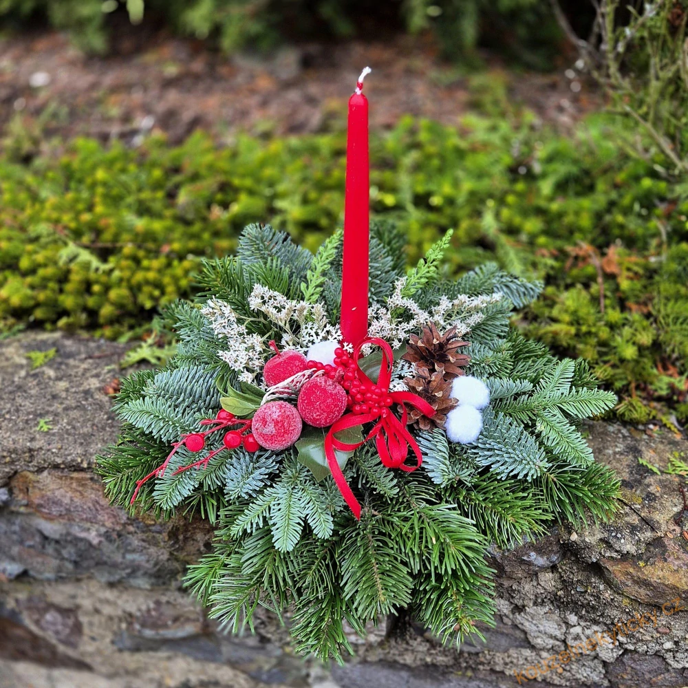 Svícen z živé jedle , zdobený viz foto. Cena včetně svíčky.