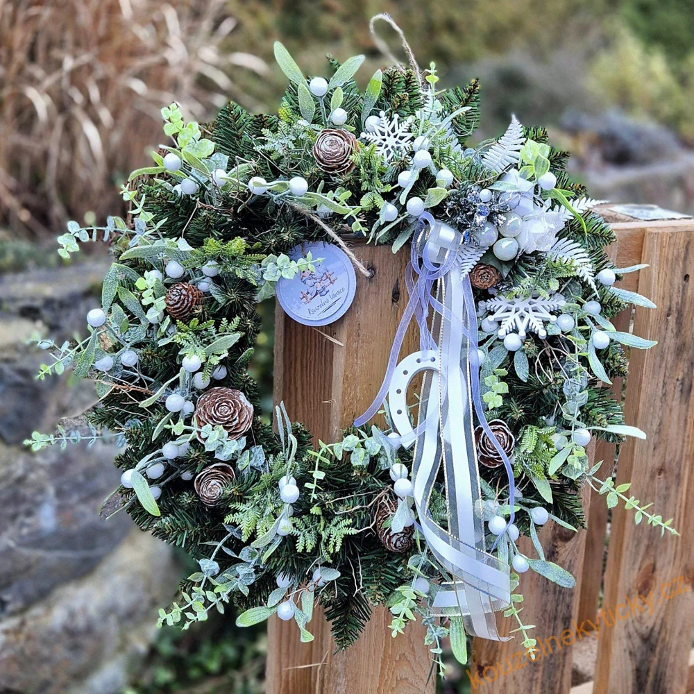 Vánoční věnec na dveře /umělý / - Jmelí a podkovičkaSkladem 1 ks1 099,0 Kč/ ks