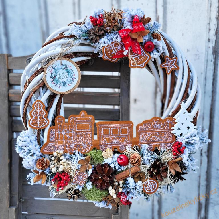 Vánoční věnec proutěný - Mašinka v perníčkovém kraji