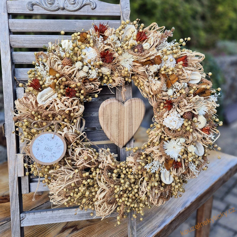 Velký věnec sušinový - Natur v krémové s dřevěným srdcemSkladem 1 ks1 150,0 Kč/ ks