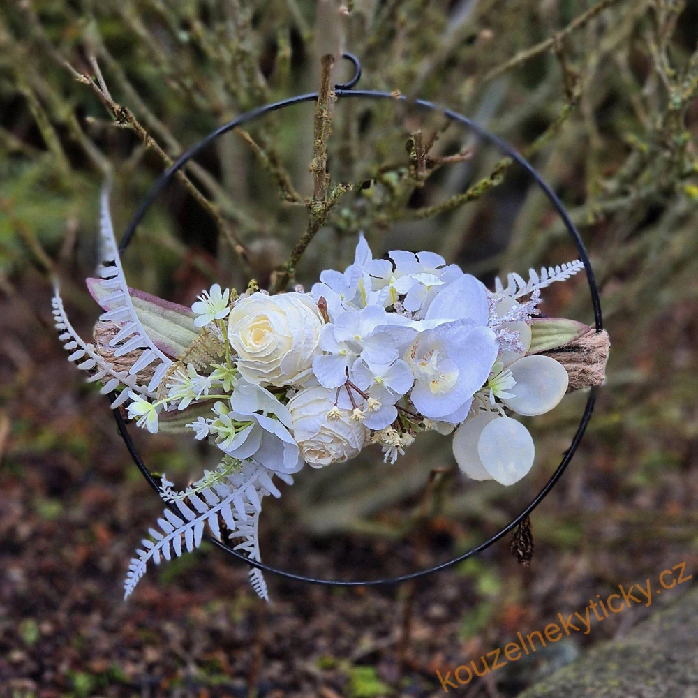 Věneček na kovovém kruhu V2 - Krémový s orchidejkou