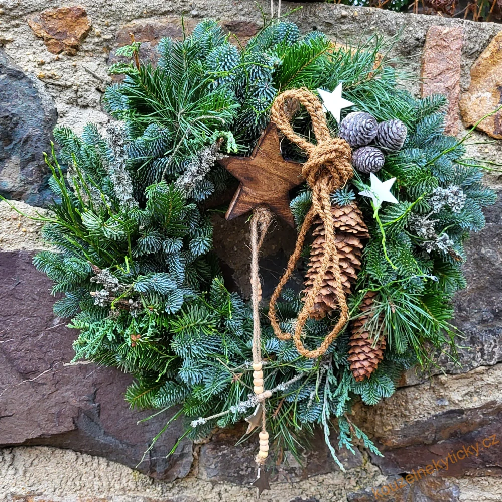REZERVACE Živý 40cm Chvojový Nobilis - Dřevěná hvězda